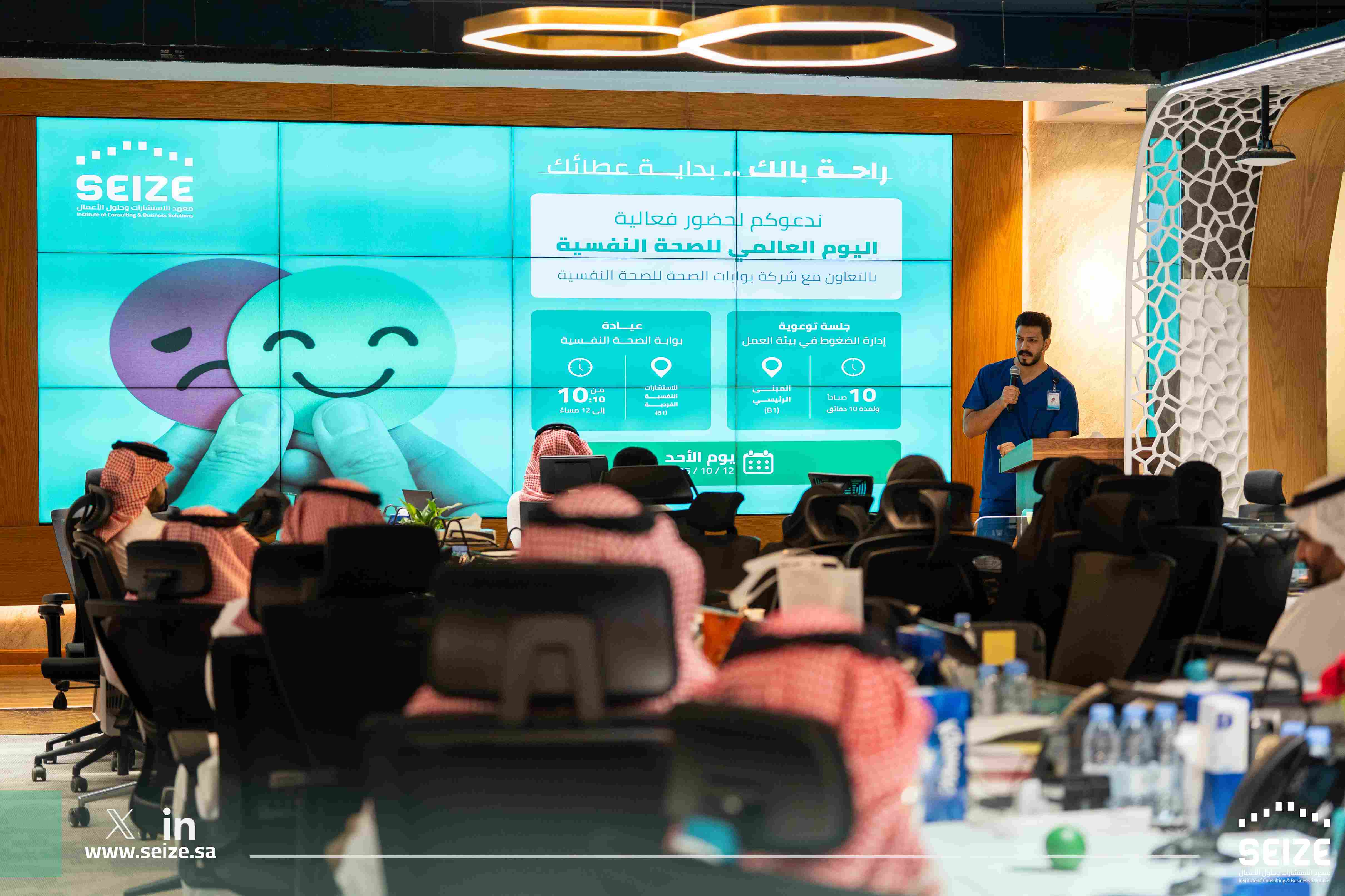 نظّم معهد الاستشارات وحلول الأعمال (سيز) بجامعة الأمير سطام بن عبدالعزيز فعالية توعوية بمناسبة اليوم العالمي للصحة النفسية 2025م، وذلك في إطار حرصه على تعزيز جودة الحياة ورفع الوعي بالصحة النفسية في بيئة العمل.